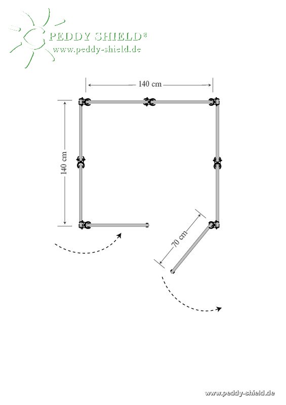 Die Umkleide Quadrat (5) bzw. Umkleidekabine Quadrat (5) ist auch einfach mit weiteren Paravent Rahmenelementen erweiterbar: