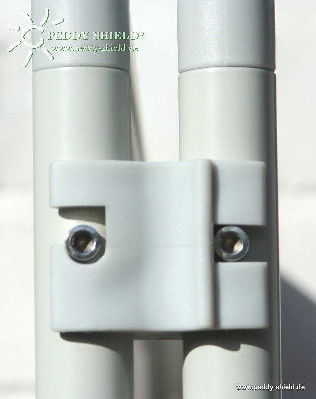 - mit 2x Verbindungs-Clips zum Anstecken über die Vertikalrohre der Schraub-Erdanker an die Paravent Rahmen