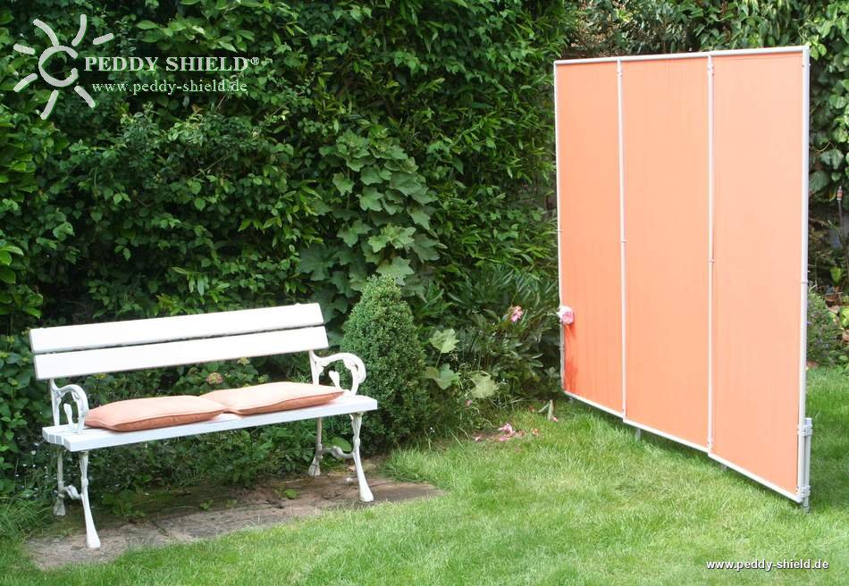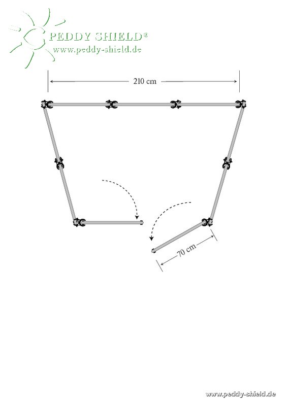 Peddy Shield hat die patentierten Sichtschutz Paravent Rahmen zu dieser mobilen Umkleidekabine Trapez entwickelt, die auch auf Rasen aufgestellt werden kann
