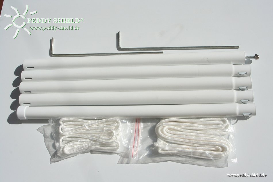 Das offene, gewirkte Gewebe verhindert Wassersäcke, weil ein solch großes Segel kaum so schräg aufzuhängen ist, daß Wassersäcke sonst sicher vermeidbar wären.